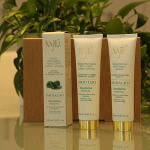 Crema corpo smeraldo: una formula ricca di burri e olii, che lascia la pelle vellutata, andandola a nutrire a fondo, grazie alla presenza di burro di karité, emollienti di origine vegetale, olio di jojoba, glicerina vegetale, trigliceridi naturali del cocco ed un complesso di polisaccaridi, che si pone sotto pelle come una spugna, finalizzato a mantenere umida la pelle