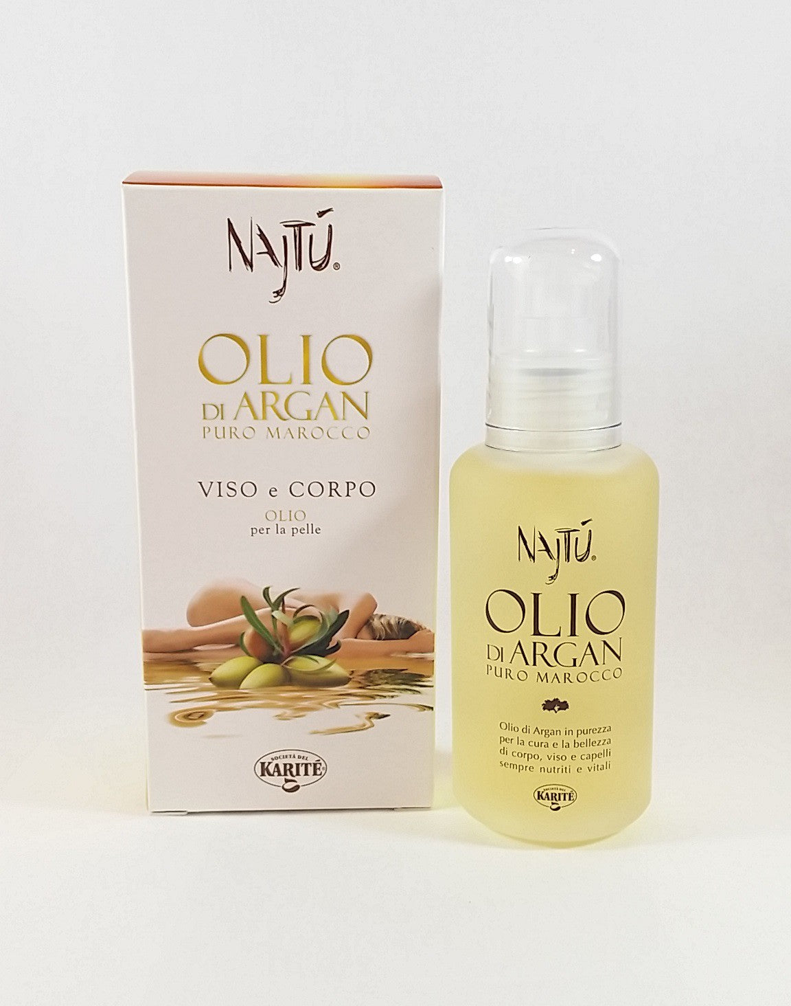 Nutre la pelle in profondità, la rende elastica e morbida, la protegge dagli attacchi degli agenti esterni che causano secchezza e irritazione, ne contrasta l’invecchiamento. L'olio di Argan è particolarmente ricco di acidi grassi insaturi e tocoferoli, dalle preziose proprietà antiossidanti e nutritive.